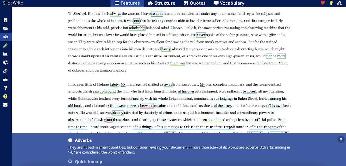 9. Slick Write (het beste voor snelle, diepgaande stijlanalyses en creatieve inspiratie)