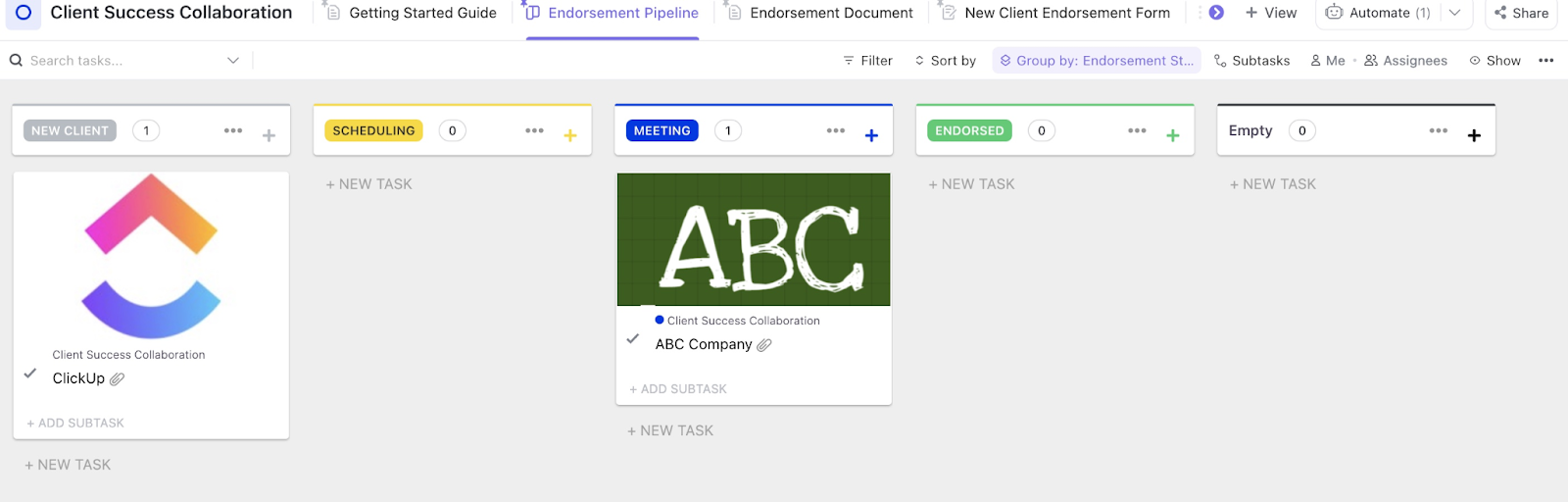 - Gebruik ClickUp's Board weergave om rollen en verantwoordelijkheden te visualiseren en toe te wijzen