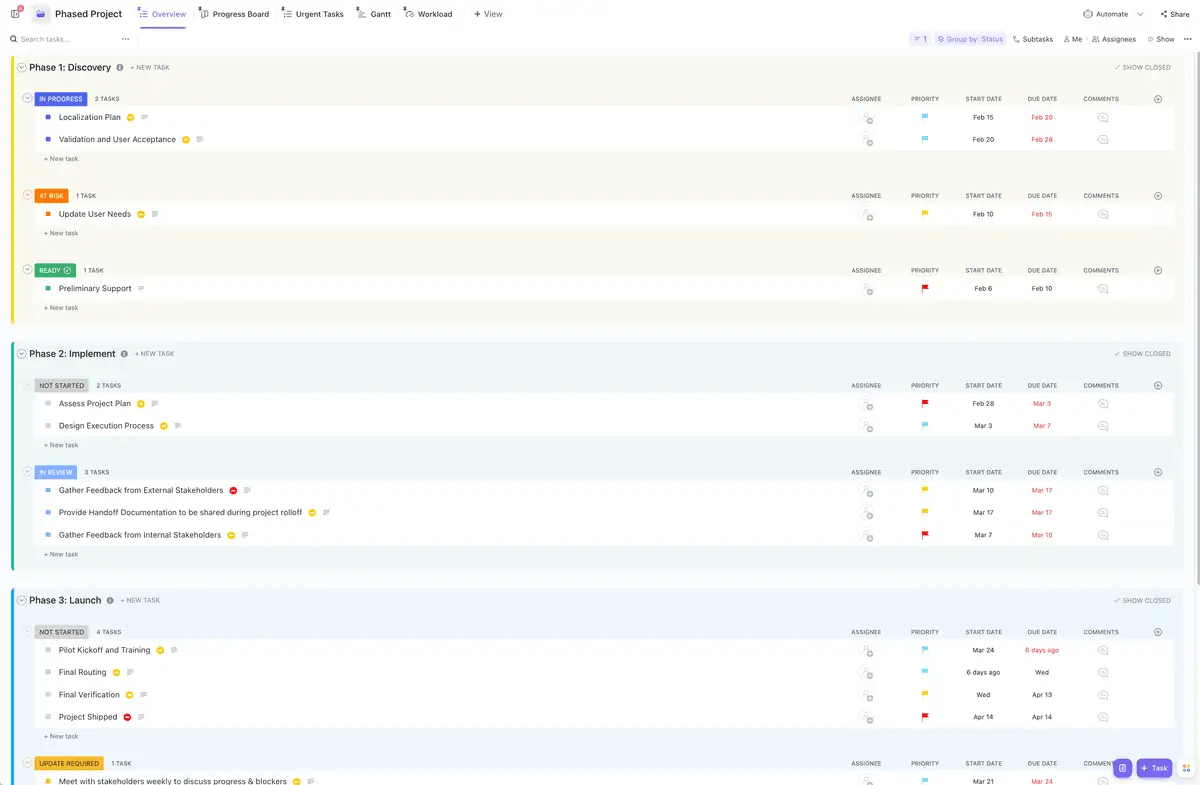- Prioridades das tarefas: ajude sua equipe de projeto a concluir as tarefas na ordem correta com quatro sinalizadores de prioridade diferentes.