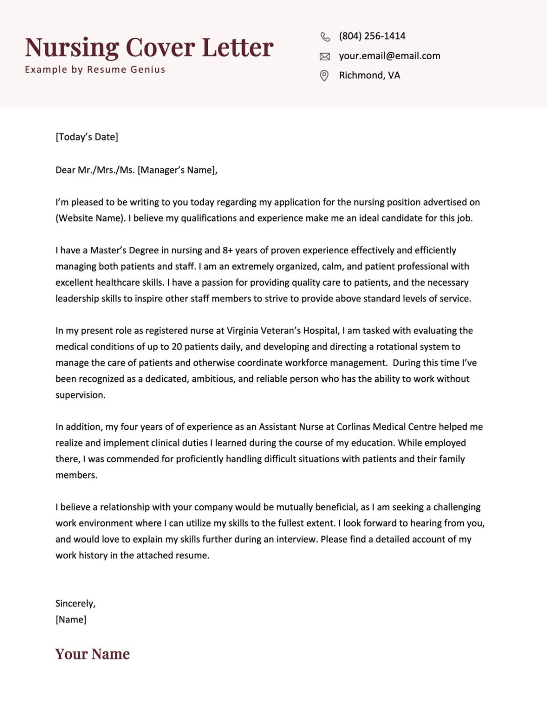 11. Modelo de carta de apresentação de enfermagem da Resumegenius