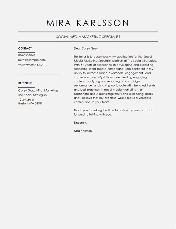 4. Modelo de carta de apresentação de marketing de mídia social do Microsoft 365