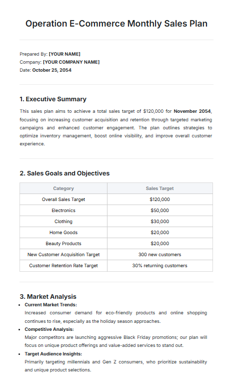 19. Modelo de plano mensal de vendas para comércio eletrônico da Template.net