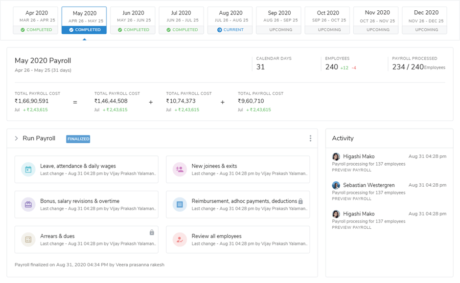 O Keka oferece uma interface intuitiva e fácil de usar que simplifica tarefas de RH, como controle de ponto, processamento da folha de pagamento e gestão de desempenho.
