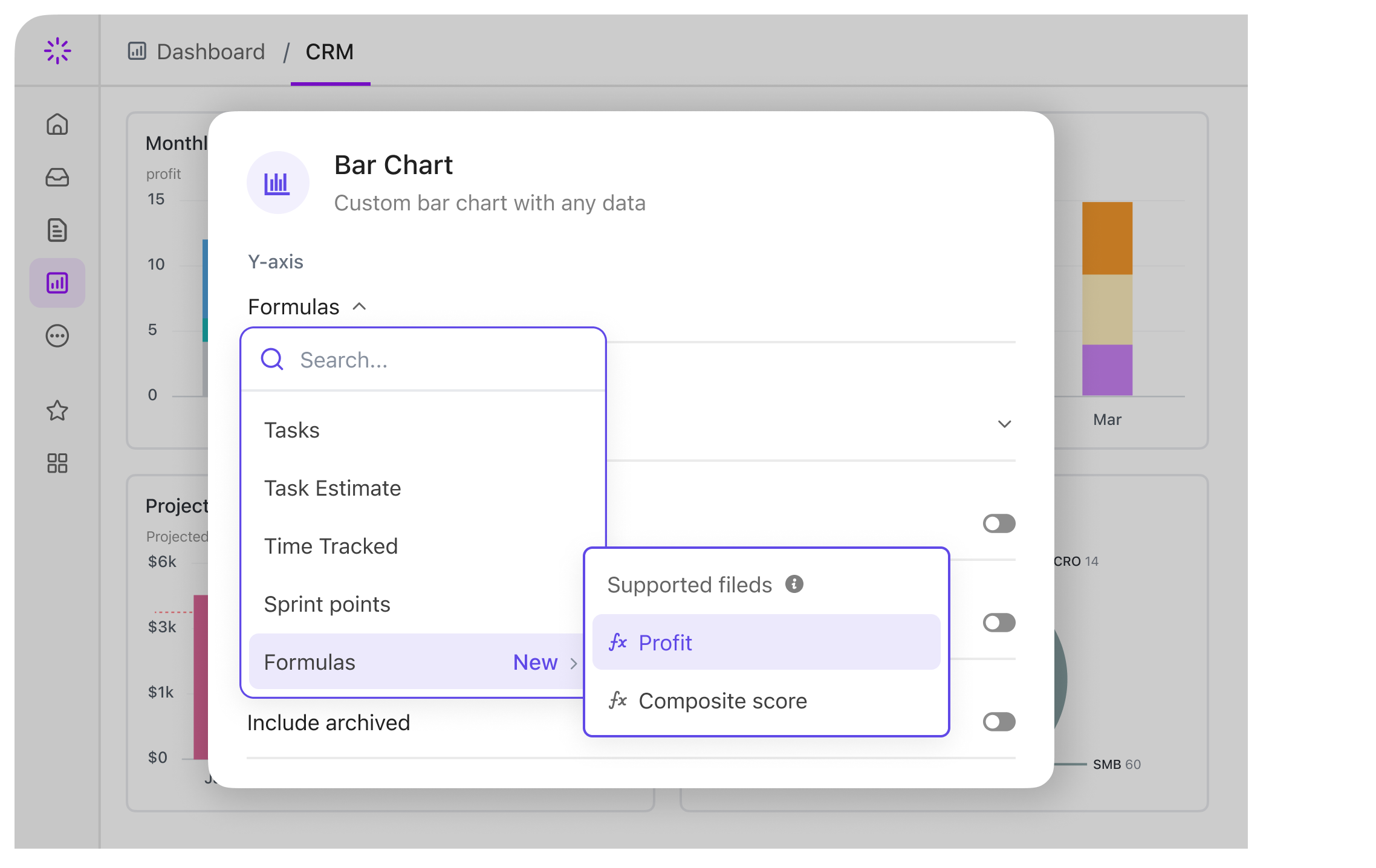 Automate cost tracking and performance analytics with smart formulas built into Custom Fields.