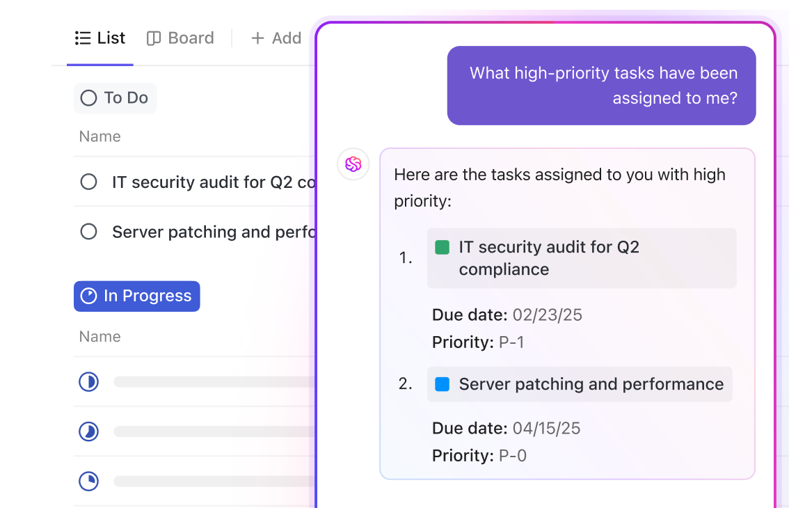 Manage IT projects, service requests, and governance in one place—all connected by AI. ClickUp makes it easy to streamline workflows and compliance so your IT operations run with speed and precision.