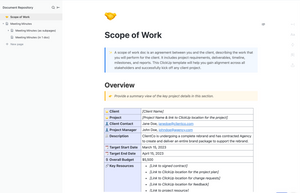 This template can help Consulting or Professional Services teams confidently collaborate with and keep clients happy, consistently deliver quality client work, and efficiently collaborate with internal teams and partners - all in one place. It includes workflows to assist with presale scoping, client engagements, and managing an entire portfolio of client projects.