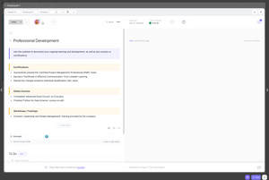 Designed as a centralized location for employees and managers to compile Weekly 1:1 Notes, document Professional Development, and highlight accomplishments — this template streamlines performance management and ensures no one misses a beat.