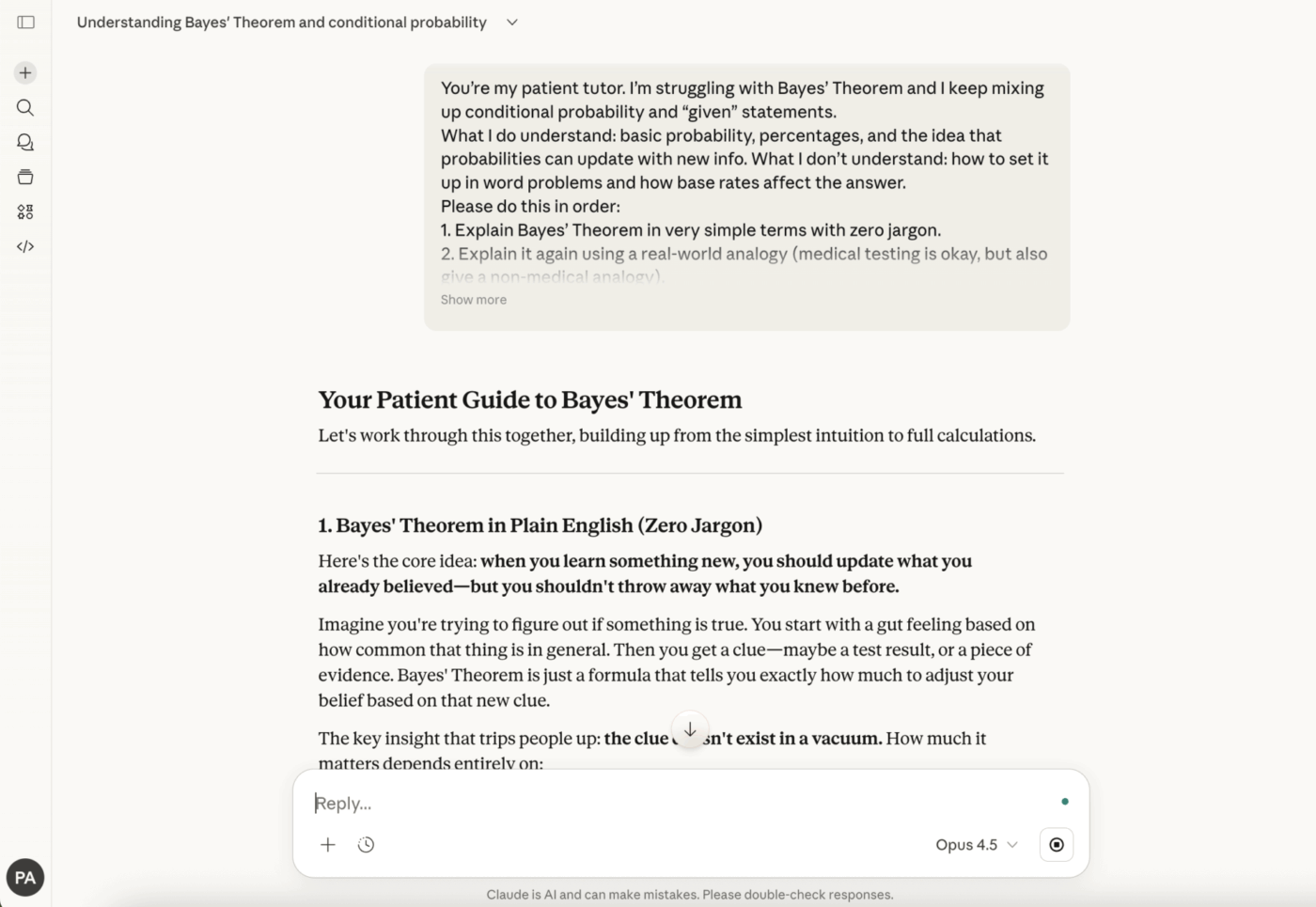 วิธีที่มีประสิทธิภาพที่สุดคือการขอให้โคลดอธิบายแนวคิด จากนั้นพยายามอธิบายกลับด้วยคำพูดของคุณเอง การมีส่วนร่วมอย่างกระตือรือร้นนี้ช่วยเสริมสร้างความเข้าใจได้มากกว่าการอ่านคำอธิบายอย่างเฉื่อยชา