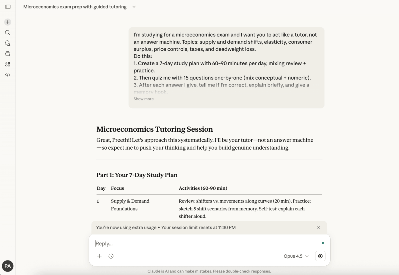 💡 เคล็ดลับมืออาชีพ: เมื่อใช้ Claude ในการเตรียมสอบ ให้ขอให้ระบุความเข้าใจผิดที่พบบ่อยเกี่ยวกับหัวข้อที่คุณกำลังศึกษา การเข้าใจว่านักเรียนมักทำผิดตรงไหนจะช่วยให้คุณหลีกเลี่ยงข้อผิดพลาดเหล่านั้นและแสดงให้เห็นถึงความเข้าใจที่ลึกซึ้งในเนื้อหา