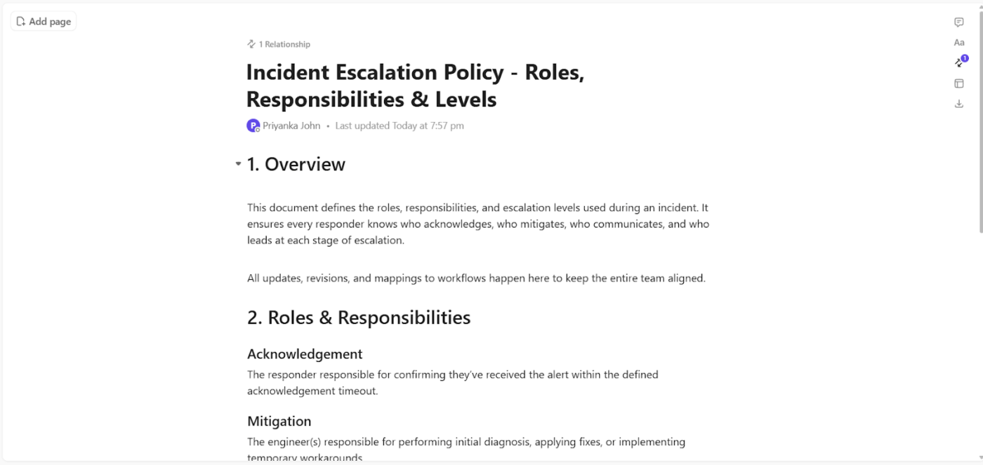 การรักษาคู่มือปฏิบัติการให้ใช้งานได้และเข้าถึงได้เมื่อจำเป็นเป็นความท้าทายที่ยิ่งใหญ่ ทีมส่วนใหญ่จบลงด้วยการมีเอกสารกระจัดกระจายอยู่ในวิกิ, Google Docs, และบุ๊กมาร์กใน Slack เมื่อเกิดเหตุการณ์ขึ้น ไม่มีใครแน่ใจว่าเวอร์ชันไหนเป็นเวอร์ชันปัจจุบันหรือเมทริกซ์การยกระดับปัญหาอยู่ที่ไหน