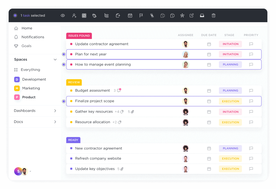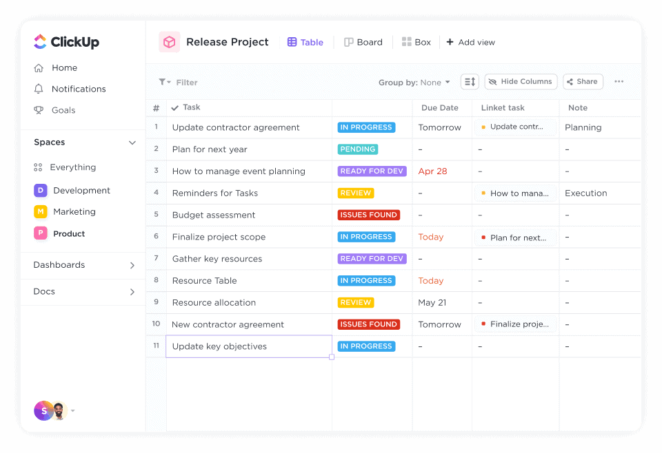 ClickUp's no-code project management empowers your team to build, track, and collaborate on every type of project and database—all in one place.