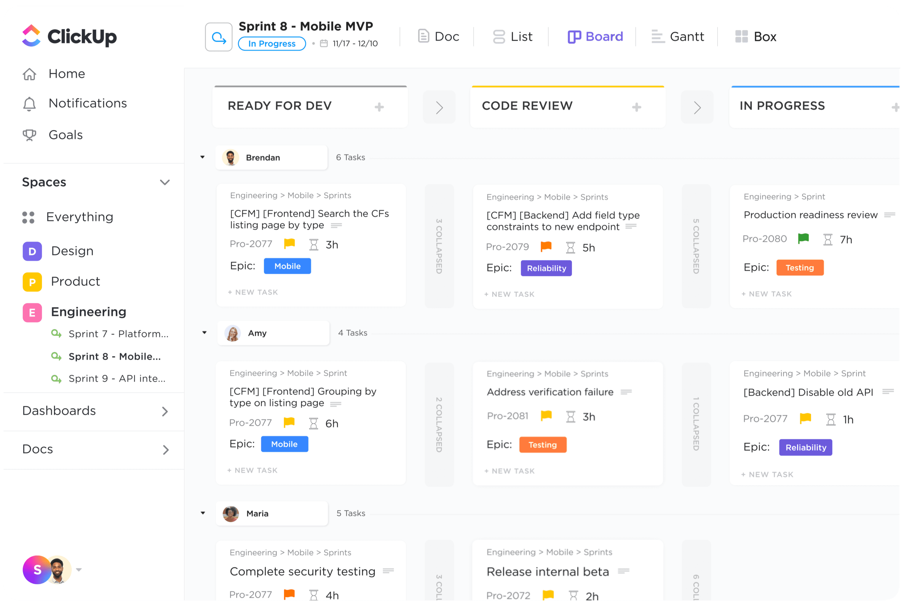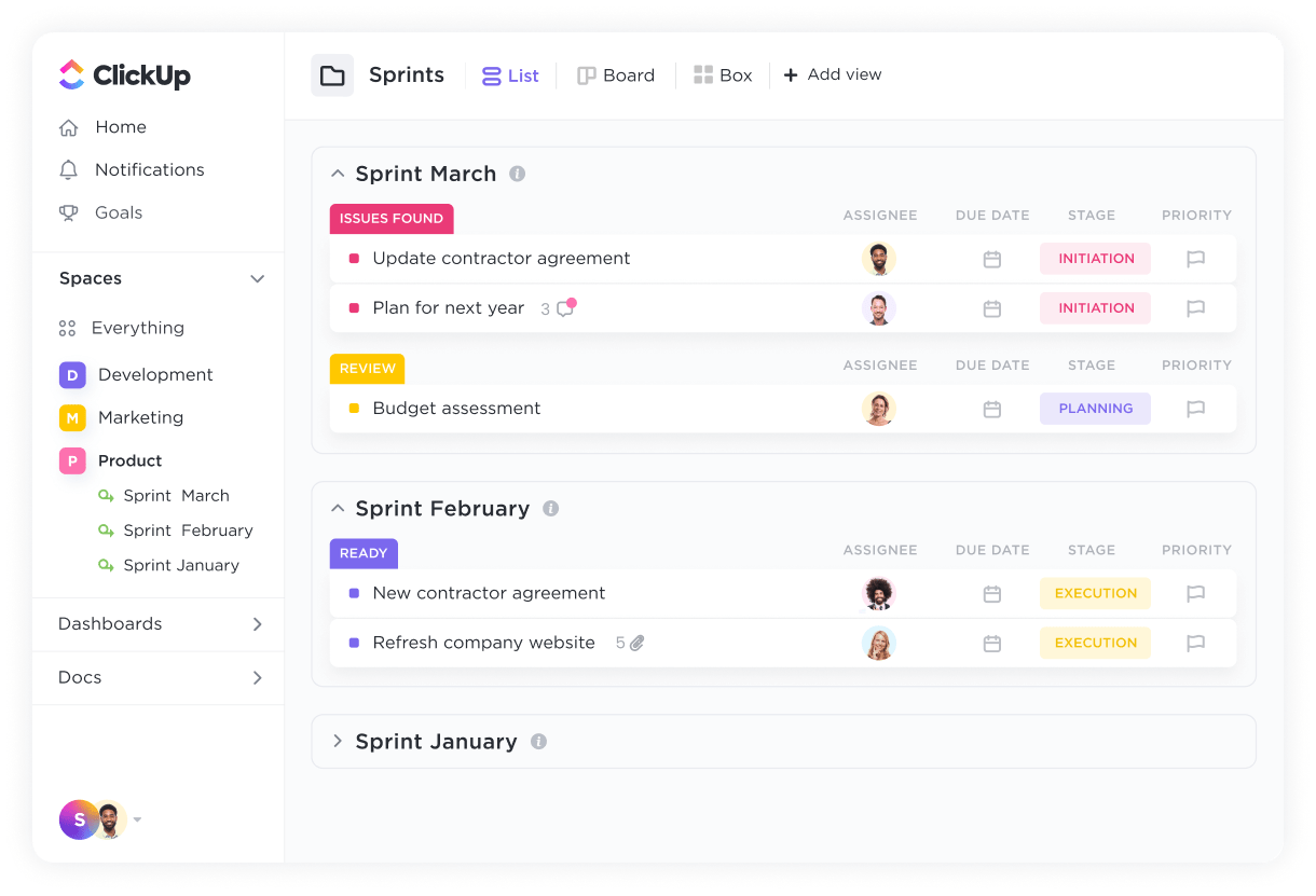 For an app focused on sprints, it sure is slow. ClickUp's flexible platform lets your whole team (not just engineers) work and chat together, so they can get work done faster. Without a bunch of plugins.