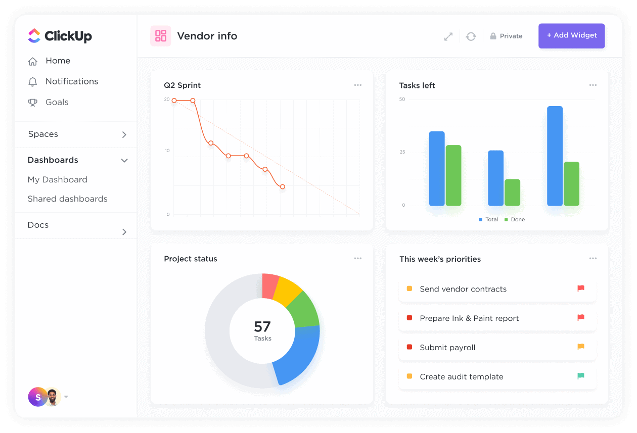 Create highly visual Dashboards that bring all of your reporting in one place. Add customizable widgets for invoices, payment reminders, special requests, and more.