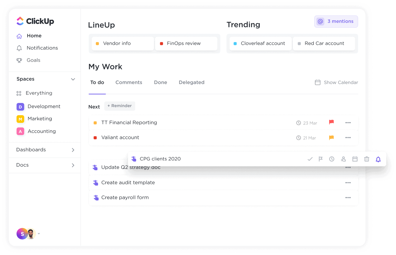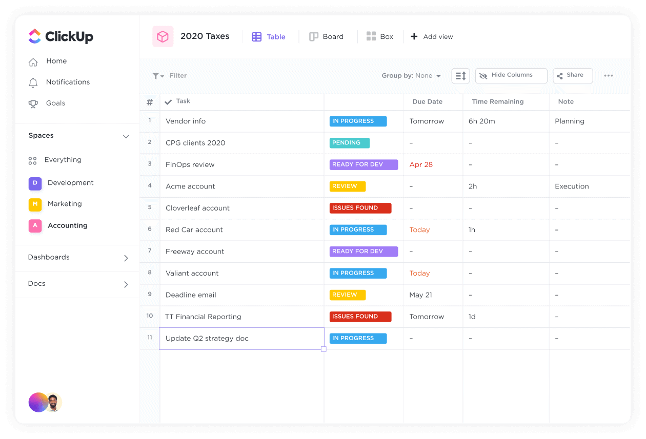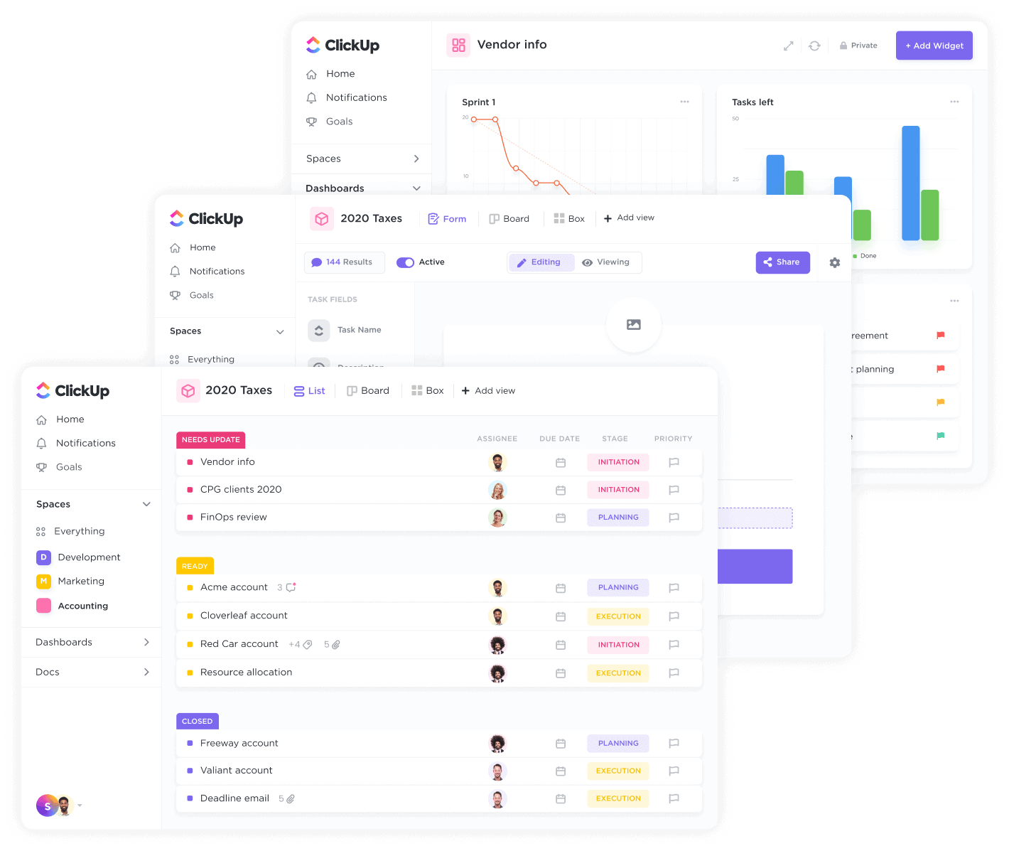 Track and manage clients, accounts, and create shareable reports with ClickUp's powerful work management tools for accounting firms.
