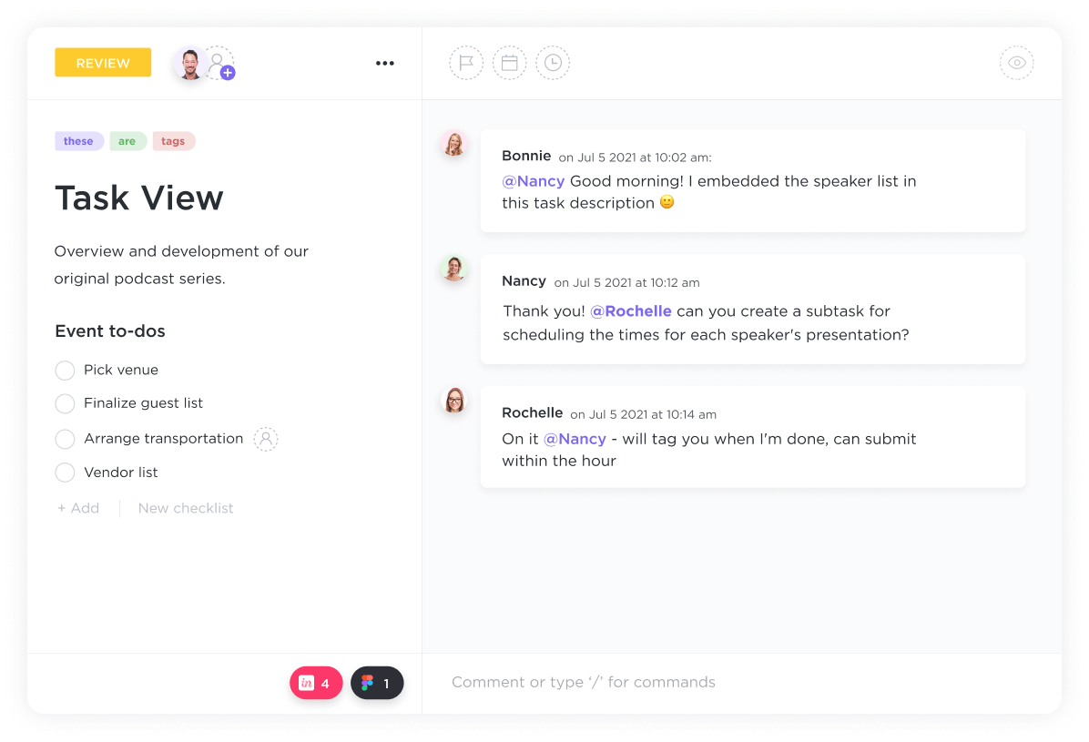 Organize events by sending and receiving emails directly within ClickUp. Create tasks via email, collaborate with your team and vendors, and never lose track of important conversations in your inbox again.