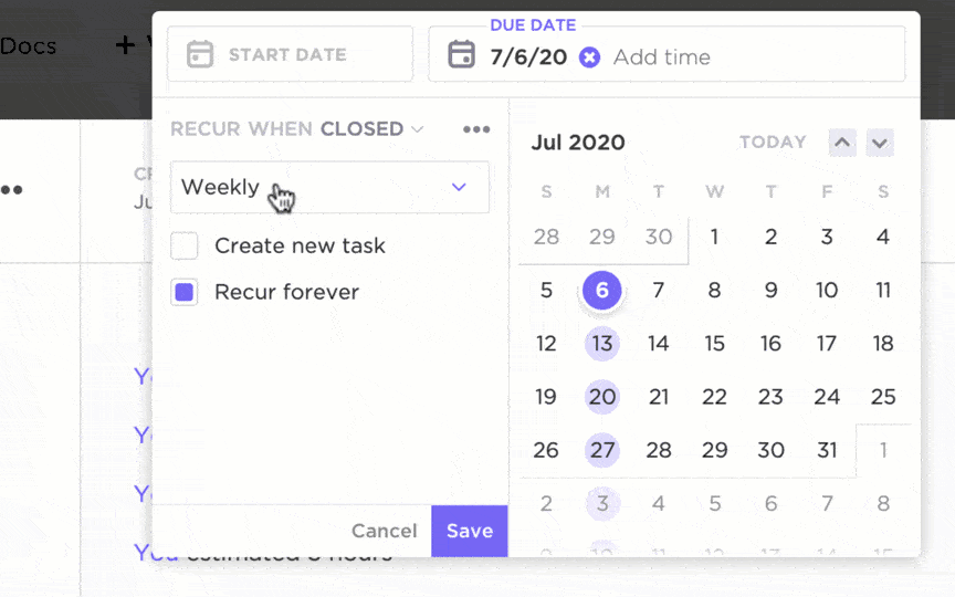 Know and be notified when payments are due with recurring tasks. After paying a monthly bill, just mark it complete, and a new task is automatically created for the next month!