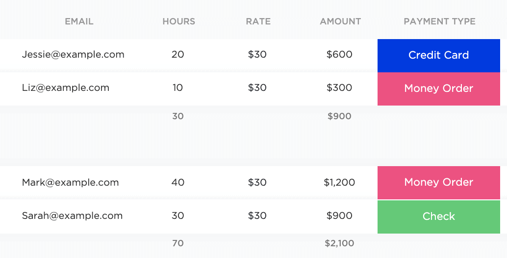 Know exactly where your money is going! Add Custom Fields for your budgeted amount, actual spend, vendor information, payment date, and more!