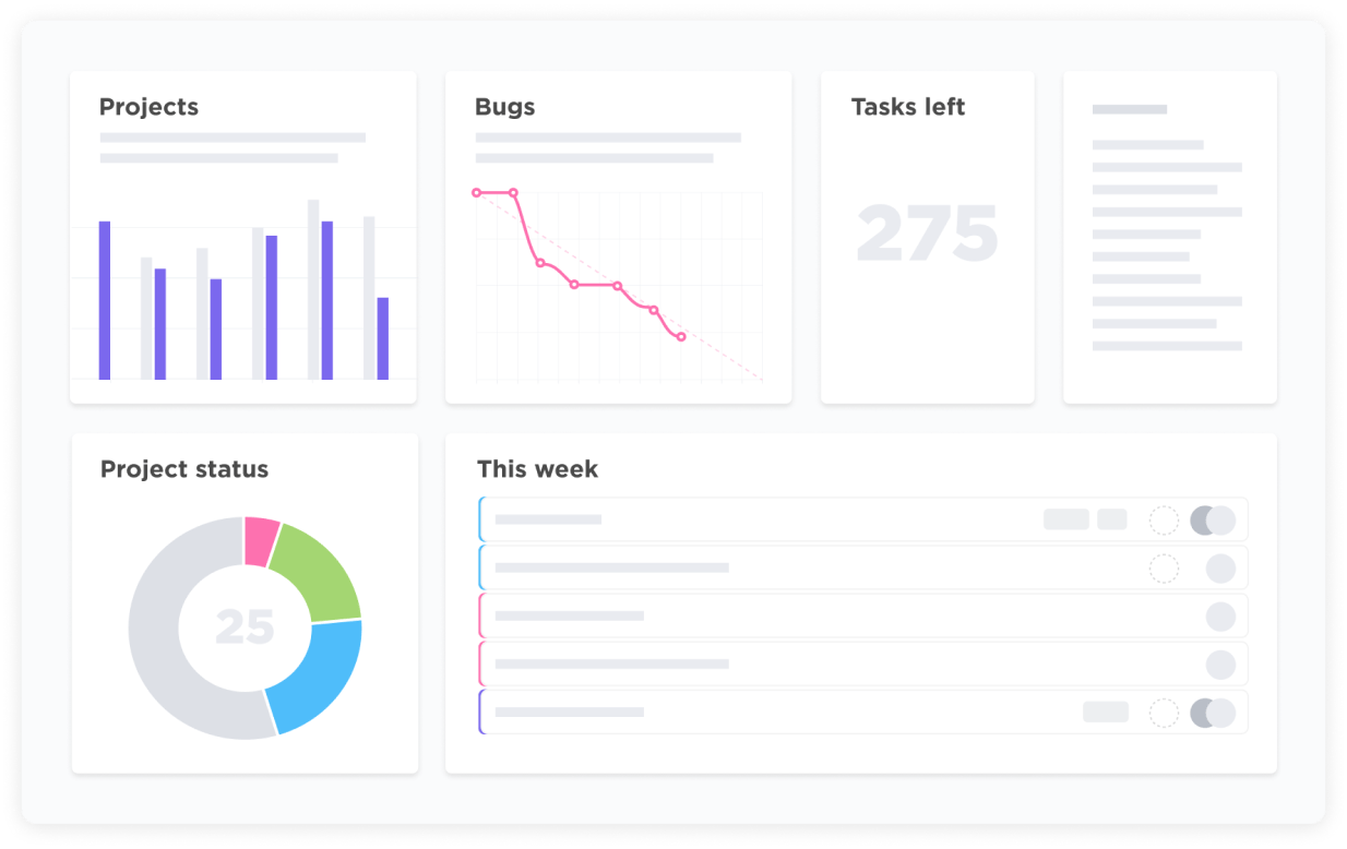 Build out your own Dashboard to track everything from content production to your team's workload. ClickUp has over 50+ widgets to help analyze your productivity.