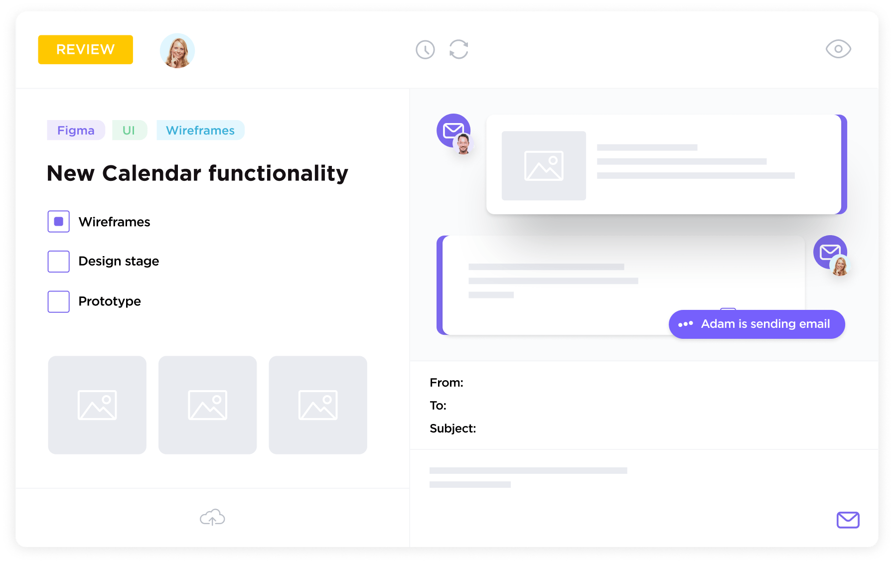 Send and receive emails directly within ClickUp. Create tasks from your emails, set reminders, and never let important conversations or action items get buried in your inbox again.