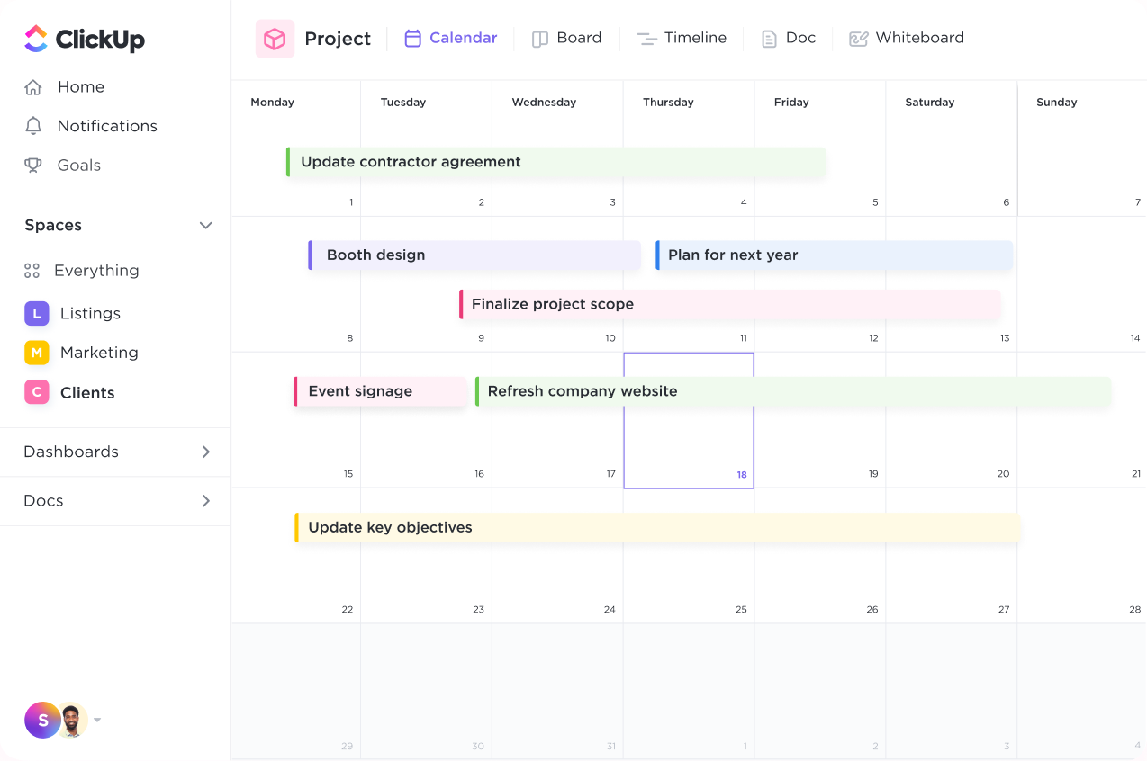 Planning: Turn brainstorming sessions about anything, from site development to marketing, into actionable plans with ClickUp's Whiteboards.