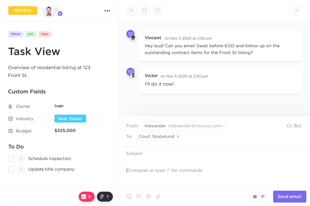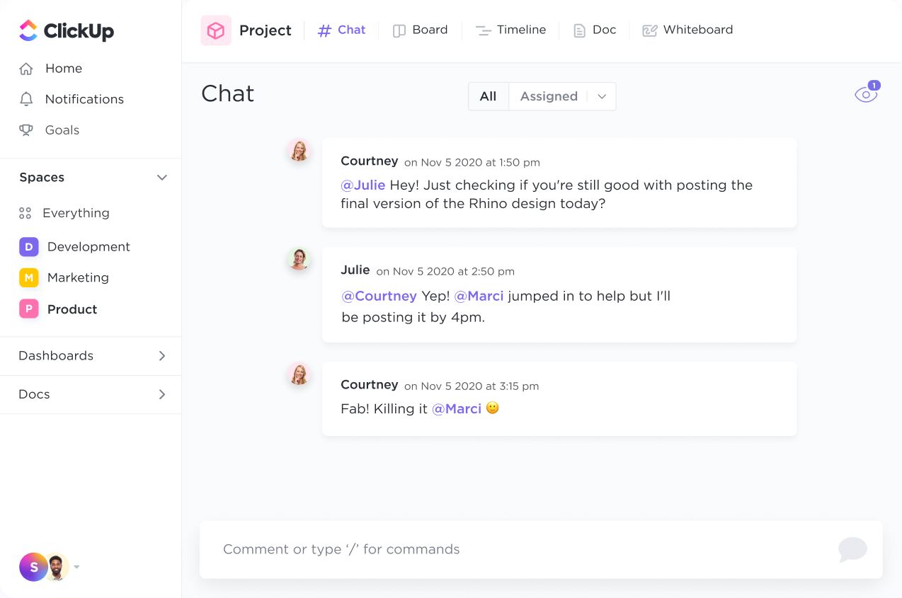 Task management: Organize simple to-dos in task checklists, track updates through comments, and attach docs files to tasks to keep all your resources in one place.