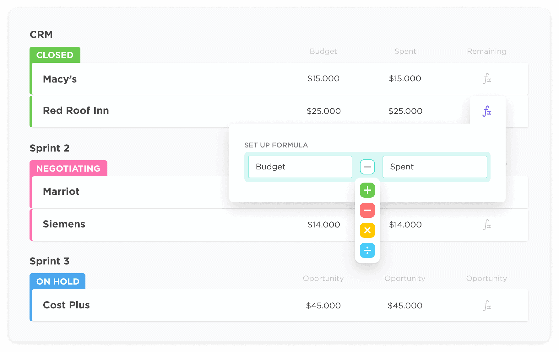 ClickUp brings your company assets, time tracking, and form management into a single place for smarter resource allocation.