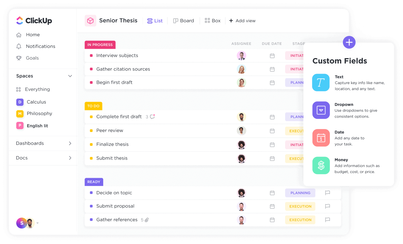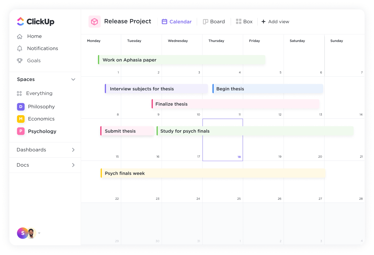 Organize your schedule, keep track of assignments, and never miss a due date with ClickUp's all-in-one platform for students.