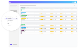 ClickUp's Hiring Candidates Template is designed to help streamline and visualize your hiring process. In this template you'll have all the tools you need to: