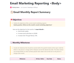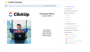 Develop and optimize every facet of your brand with ClickUp's Marketing templates. Campaigns, budgets, and creative—all in one place.